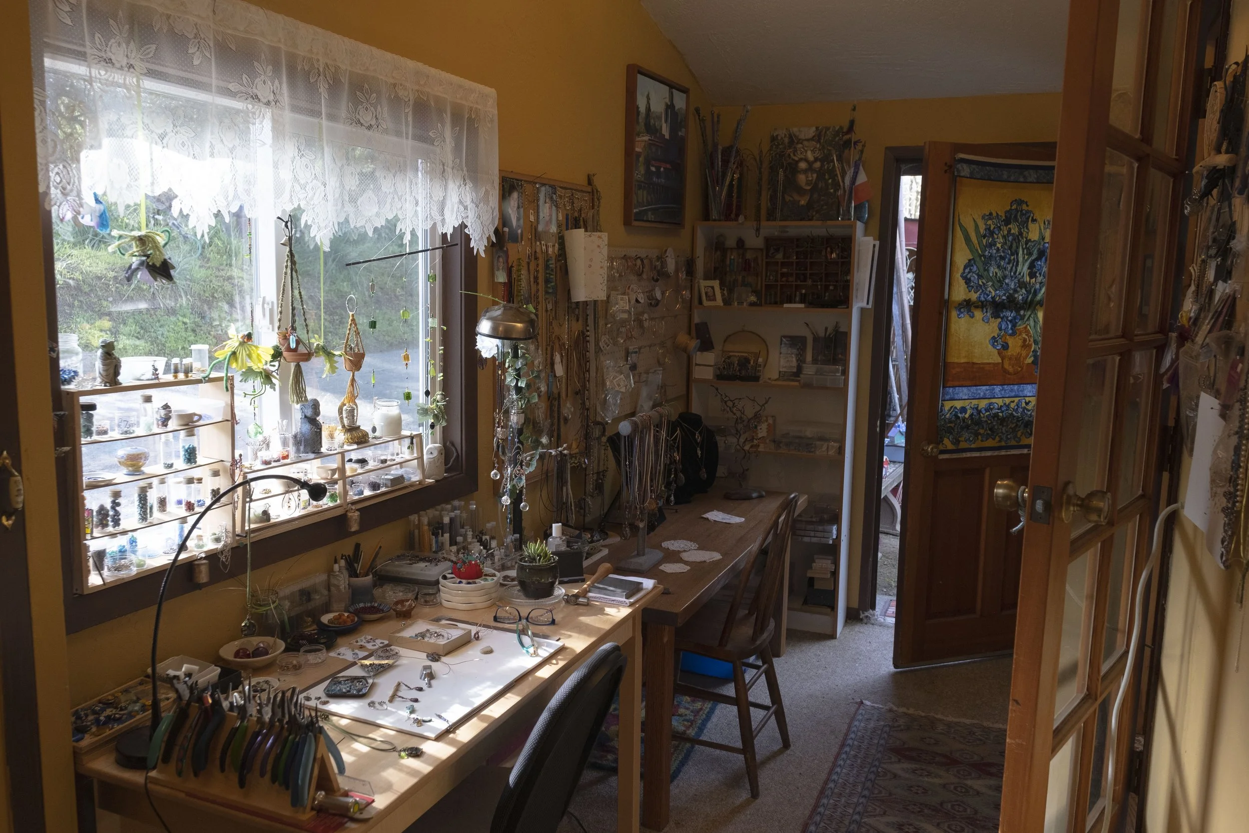 Currently, Betsy is based in Sonoma County, where she is able to spend time with her family, as well as draw constant inspiration from the stunning Northern California beaches, vineyards and forests. When she is not in her studio making jewelry, Betsy loves hiking, camping, reading, and making wands, fairy houses for her garden, and other craft projects with her granddaughters.